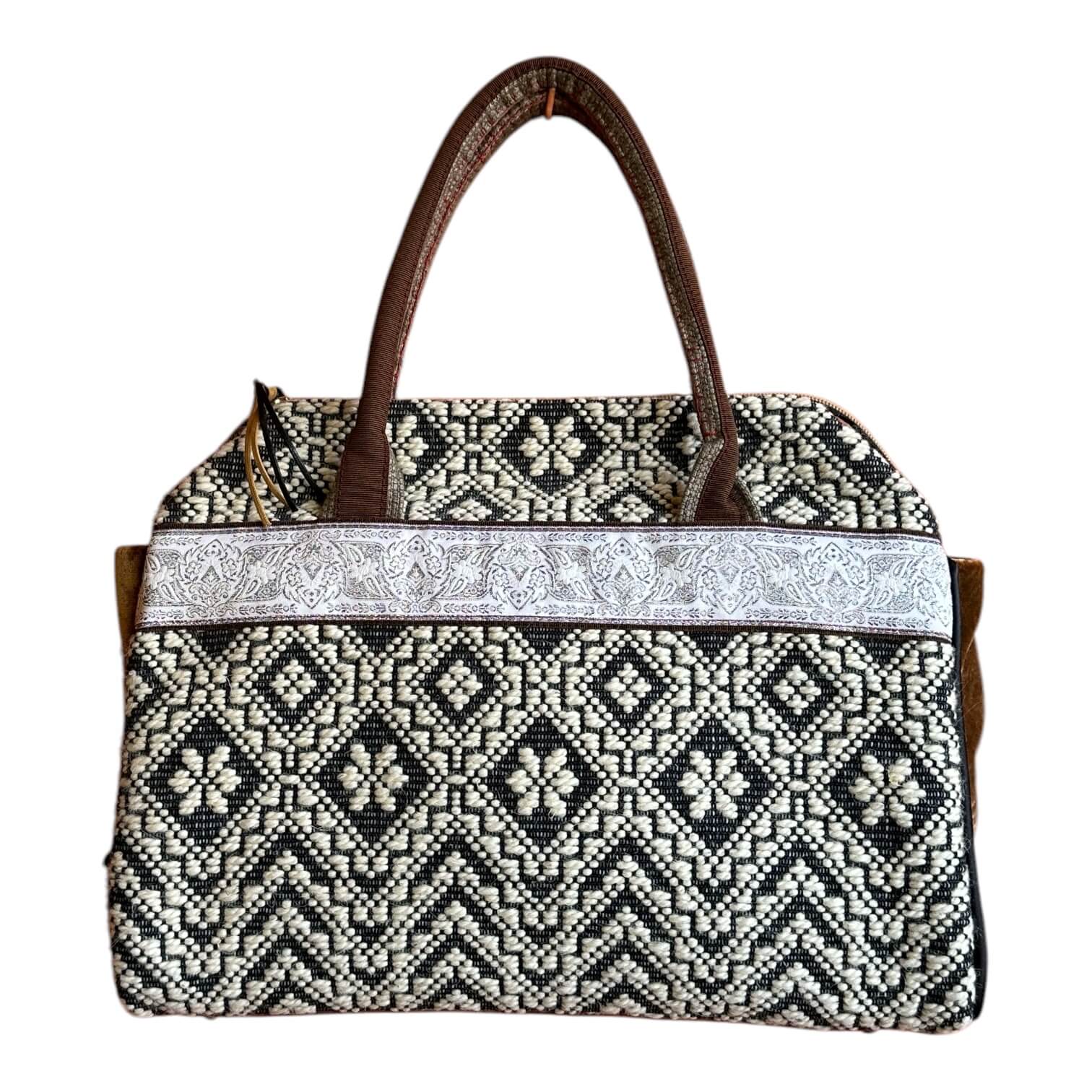 Le mie borse sono create interamente a mano e nascono dall’incontro di tessuti legati alla tradizione con diversi materiali come seta, lana, cotone, pelle, cuoio, metallo, legno, rigorosamente ricercati e di pregio.
