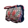 Realizzata in puro cotone, con un pannello anteriore in tessuto fatto a telaio e ricamato, inserti sul davanti e dietro e  sui laterali in velluto e il fondo in pelle con appositi piedini in metallo.