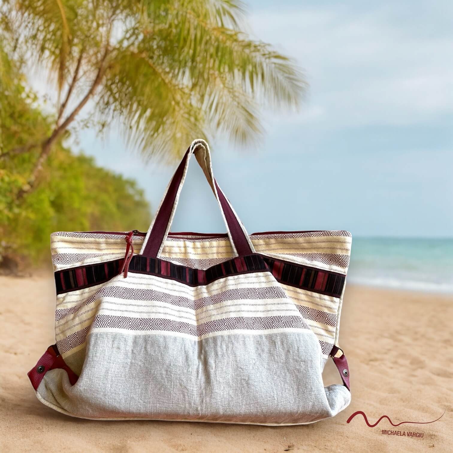La borsa made in Sardegna “Sa Playa ” è realizzata con tessuto in puro lino nei colori pastello ….. fa venire voglia di estate.
