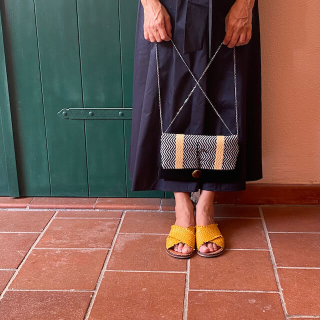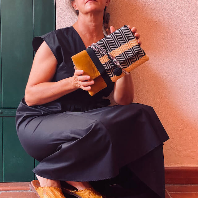 A questi meravigliosi tessuti infine vengono abbinati diversi materiali per dare all’accessorio l’aspetto finale desiderato e di pregio come sete, lane, lini, pelle ecc. per conferire unicità al prodotto.